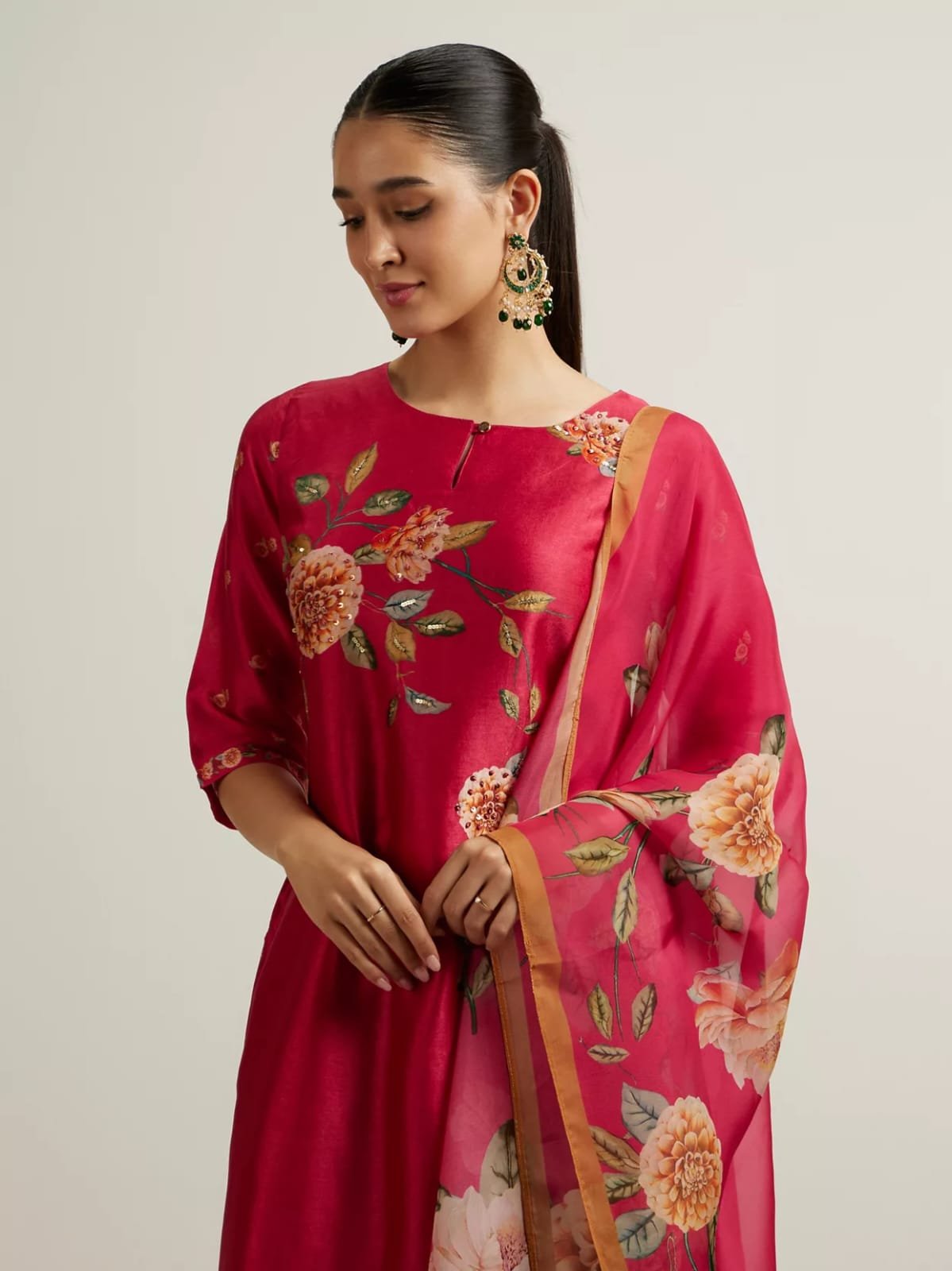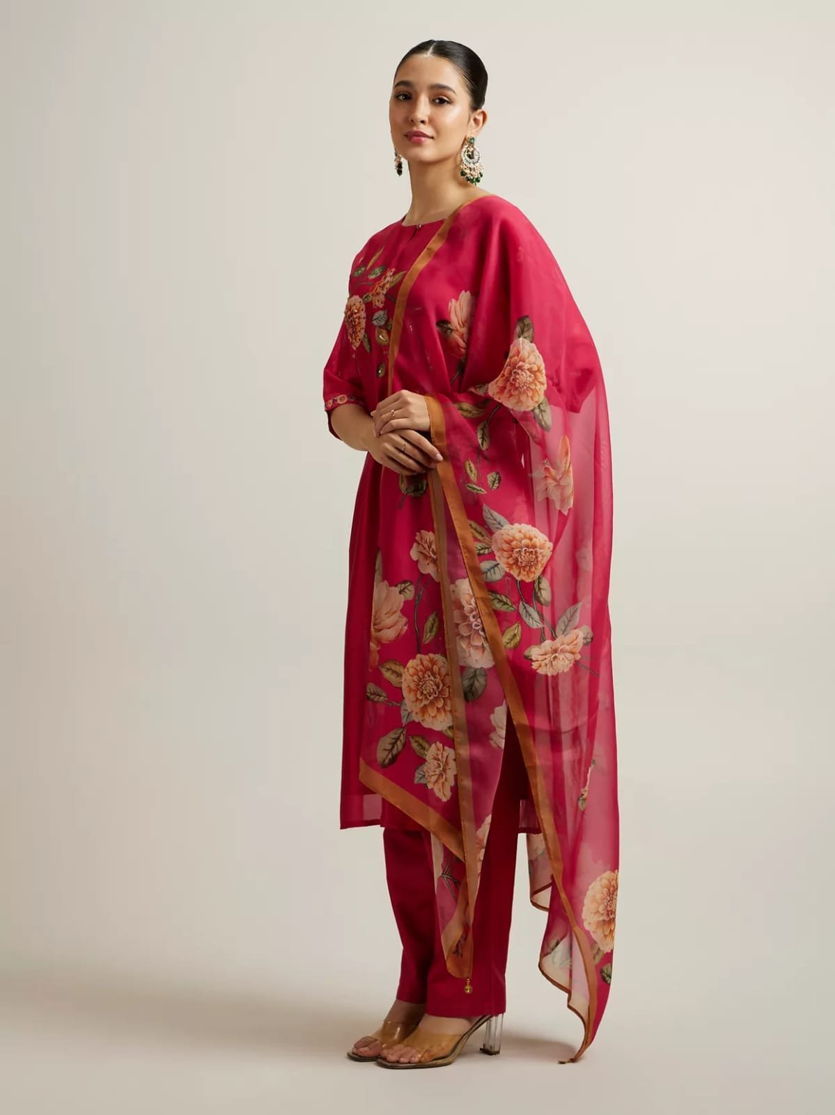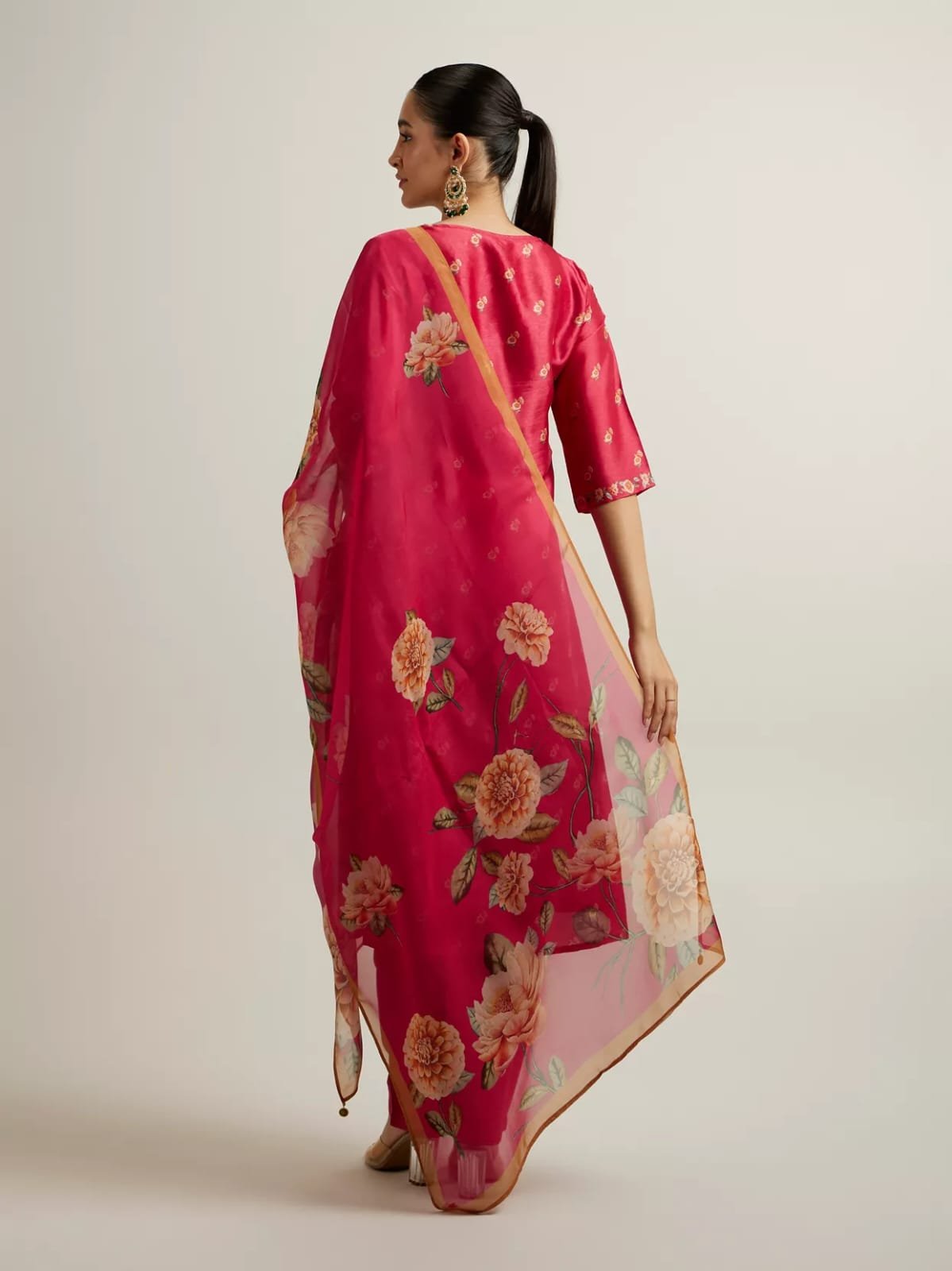 - Dupatta: Sheer fabric with scattered motifs and border detailing