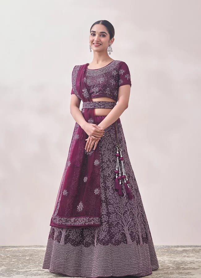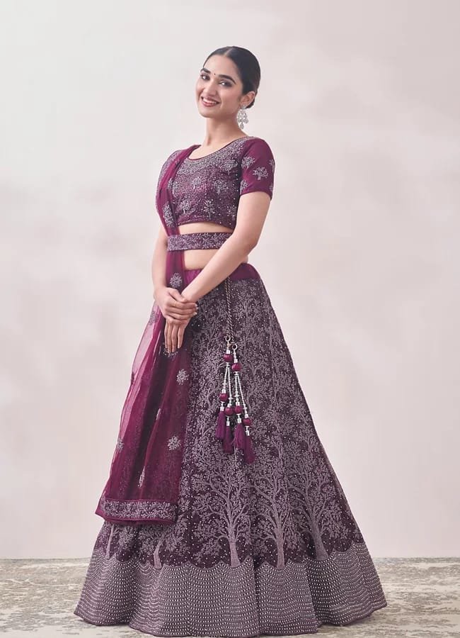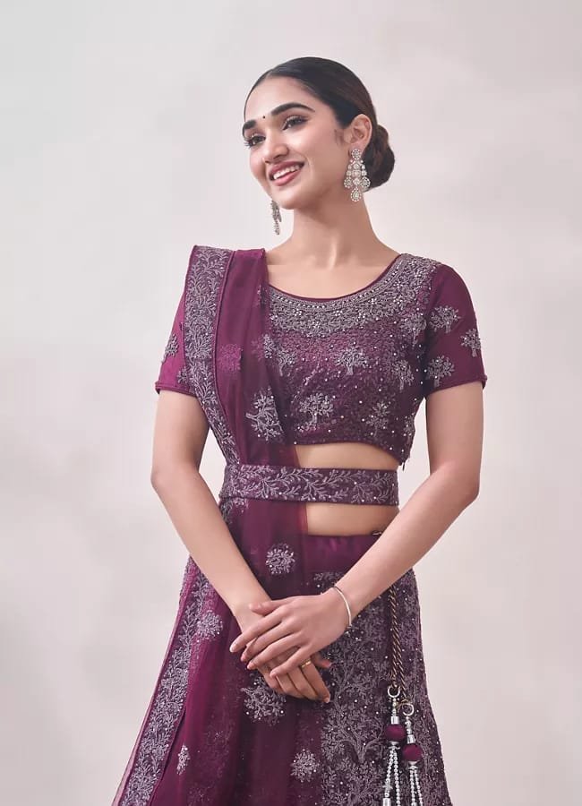 Be the first to review “Wine Majesty Embroidered Lehenga Choli Set”